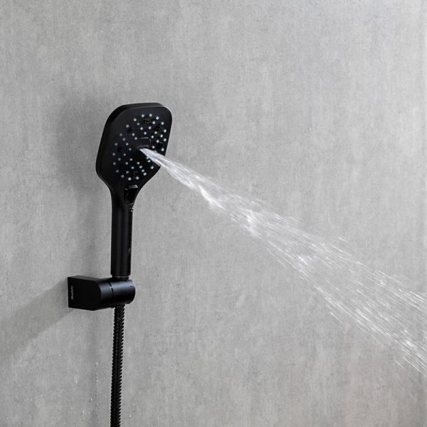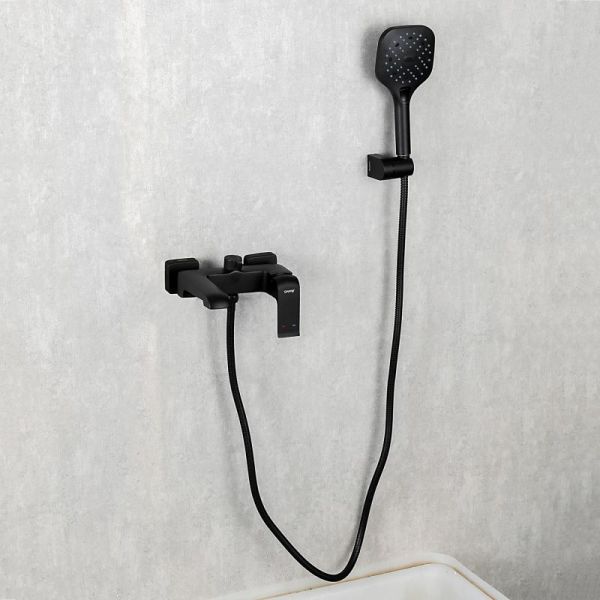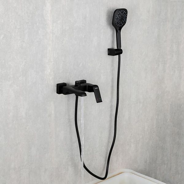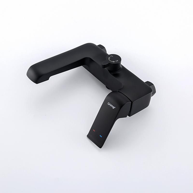 Смеситель для ванны Gappo Aventador G3250​ - стильная латунная модель с коротким литым изливом и переключателем в корпусе. Цвет - черный. Душевая лейка в комплекте.