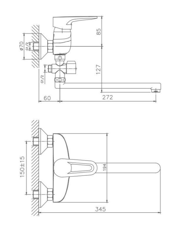 Керамический картридж 40 мм.Диаметр декоративных чашек 70 мм.Душевой гарнитур в комплекте.Межосевое расстояние (расстояние между выходом горячей и холодной трубы) 150 мм.Данное расстояние изменяется за счет входящих в комплект эксцентриков на 15 мм в большую или меньшую стороны.