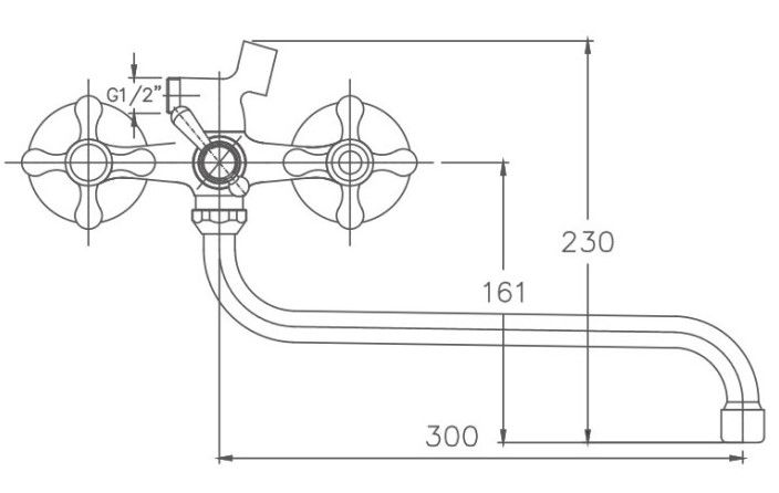 Диаметр декоративных чашек 70 мм.Душевой гарнитур в комплекте.Межосевое расстояние (расстояние между выходом горячей и холодной трубы) 150 мм.Данное расстояние изменяется за счет входящих в комплект эксцентриков на 10 мм в большую или меньшую стороны.