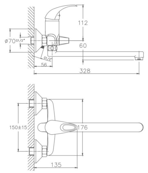 Керамический картридж 35 мм.Диаметр декоративных чашек 70 мм.Душевой гарнитур в комплекте.Межосевое расстояние (расстояние между выходом горячей и холодной трубы) 150 мм.Данное расстояние изменяется за счет входящих в комплект эксцентриков на 15 мм в большую или меньшую стороны.