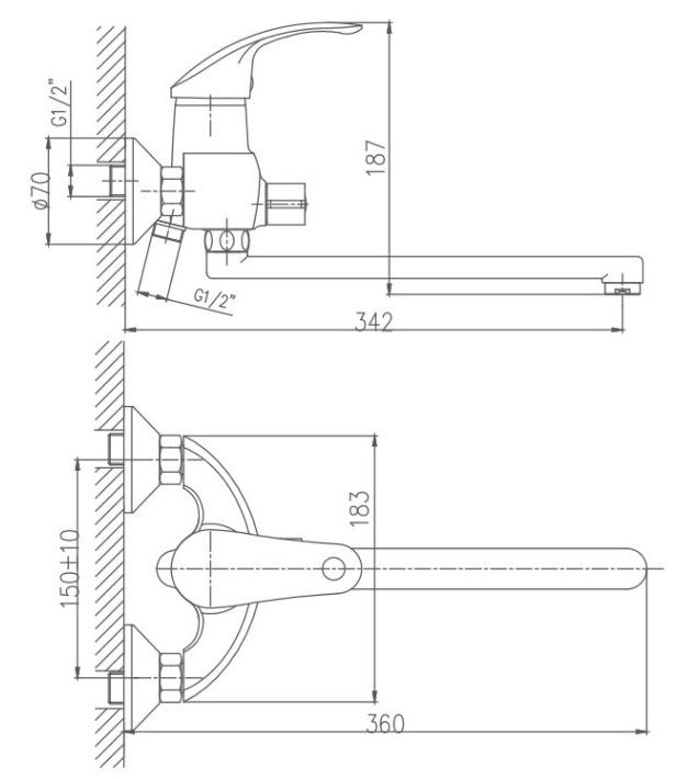 Керамический картридж 40 мм.Диаметр декоративных чашек 70 мм.Душевой гарнитур в комплекте.Межосевое расстояние (расстояние между выходом горячей и холодной трубы) 150 мм.Данное расстояние изменяется за счет входящих в комплект эксцентриков на 10 мм в большую или меньшую стороны.