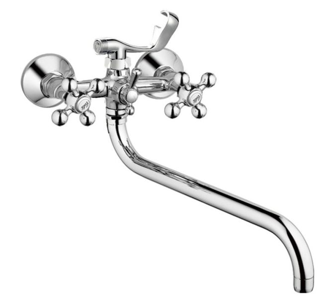 Диаметр декоративных чашек 70 мм.Душевой гарнитур в комплекте.Межосевое расстояние (расстояние между выходом горячей и холодной трубы) 150 мм.Данное расстояние изменяется за счет входящих в комплект эксцентриков на 10 мм в большую или меньшую стороны.