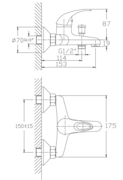 Автоматический девиатор.Керамический картридж 35 мм.Диаметр декоративных чашек 70 мм.Душевой гарнитур в комплекте.Межосевое расстояние (расстояние между выходом горячей и холодной трубы) 150 мм.Данное расстояние изменяется за счет входящих в комплект эксцентриков на 15 мм в большую или меньшую стороны.