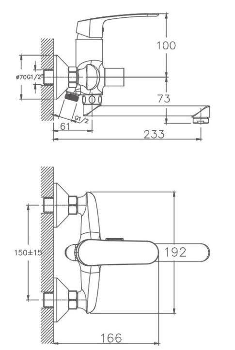 Керамический картридж 35 мм.Диаметр декоративных чашек 70 мм.Душевой гарнитур в комплекте.Межосевое расстояние (расстояние между выходом горячей и холодной трубы) 150 мм.Данное расстояние изменяется за счет входящих в комплект эксцентриков на 15 мм в большую или меньшую стороны.