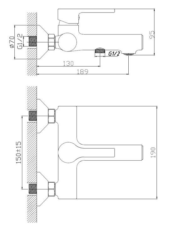 Керамический картридж 35 мм.Диаметр декоративных чашек 70 мм.Душевой гарнитур в комплекте.Межосевое расстояние (расстояние между выходом горячей и холодной трубы) 150 мм.Данное расстояние изменяется за счет входящих в комплект эксцентриков на 15 мм в большую или меньшую стороны.