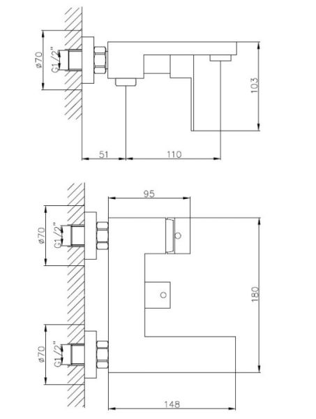 Смеситель для ванны Haiba HB60803-2 сталь