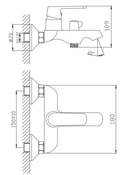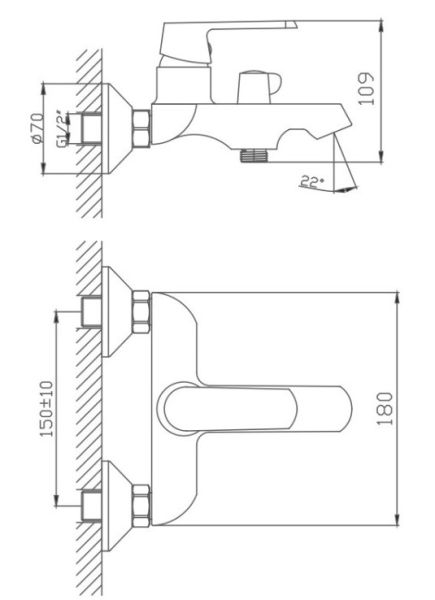 Керамический картридж 35 мм.Диаметр декоративных чашек 70 мм.Душевой гарнитур в комплекте.Межосевое расстояние (расстояние между выходом горячей и холодной трубы) 150 мм.Данное расстояние изменяется за счет входящих в комплект эксцентриков на 10 мм в большую или меньшую стороны.