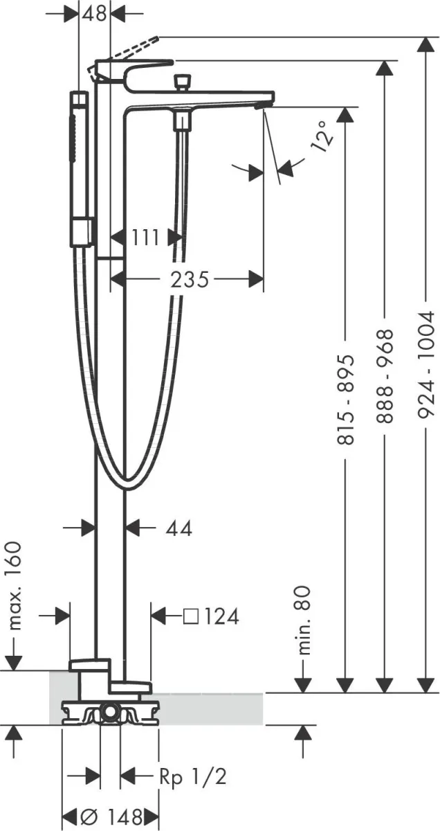 Высота излива, мм