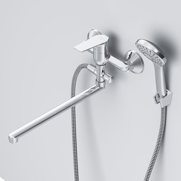 Смеситель для ванны AM.PM Gem F90A90100 универсальный с душевым гарнитуром.Стильное универсальное решение для ванной комнаты - качественный смеситель для ванны и душа с длинным поворотным изливом с душевым набором. Универсальный длинный излив позволяет использовать смеситель как для ванны, так и для рядом стоящей раковины. Функциональный держатель для ручного душа на два положения добавит удобства использования. Душевой шланг длиной 150 см позволит наслаждаться душем даже высокому человеку. Максимум функций за разумную плату в одном изделии! Ультрамодный дизайн ручки придает смесителю дополнительную динамику и дарит непревзойденную легкость управления. Вы почувствуете это с первого прикосновения. Точная инженерия для Вашего комфорта: благодаря обширной зоне движения ручки управлять температурой воды стало еще проще.