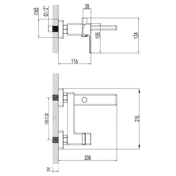 Смеситель для ванны и душа Azario BLAKE AZ-VBT238205C с ручным душем