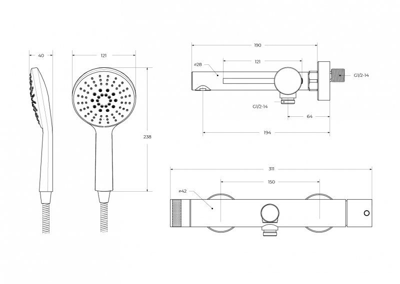 Смеситель для ванны и душа CEZARES RELAX-VD-NOP черный матовый