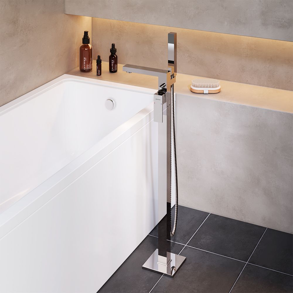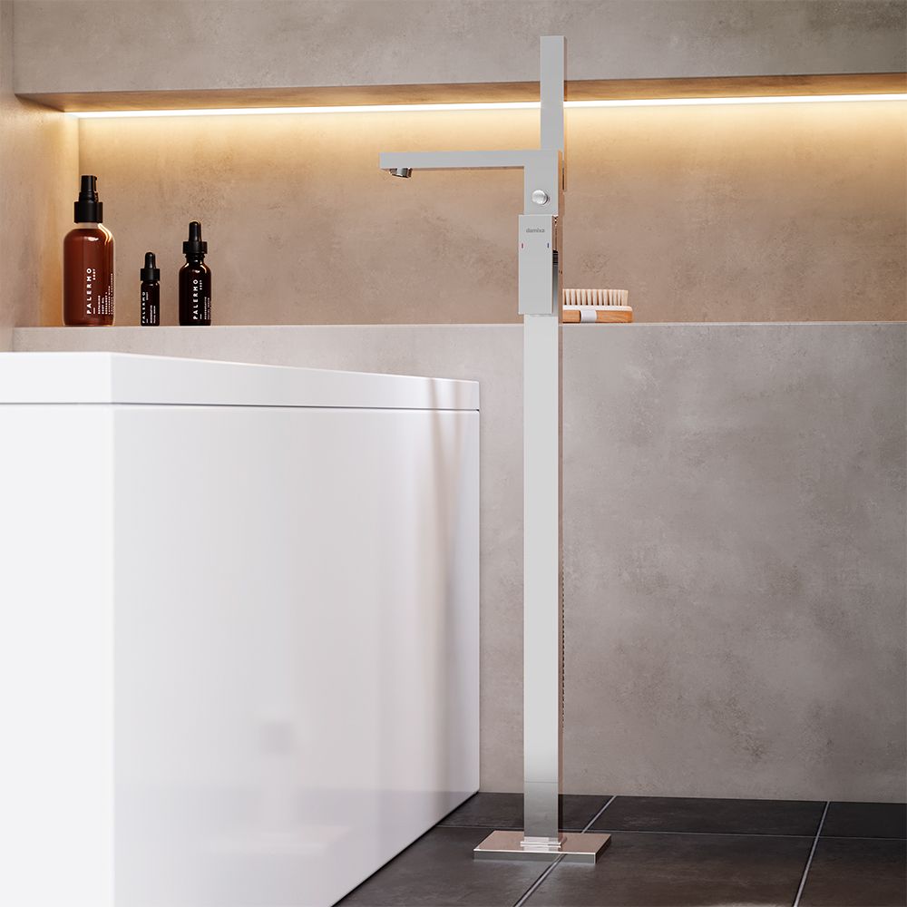 Смеситель для ванны и душа Damixa Gala 535000000 хромКорпус смесителя 1 шт.; излив 1 шт. ; кронштейн крепления 1 шт. ; комплект крепежный 1 шт. ; рчной душ 1 шт. ; шланг 1 шт. ; гибкая подводка 2 шт. ; декоративная тарелка 1 шт. ; инструкция . Хромированный, высокий отдельностоящий смеситель для отдельностоящей ванны и ручного душа, оригинальный дизайн строгие прямоугольные формы, ручной душ прямоугольной формы, управление одной ручкой