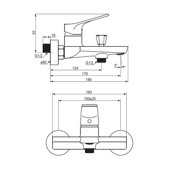 Смеситель для ванны и душа Damixa Merkur 401000300 черный купить