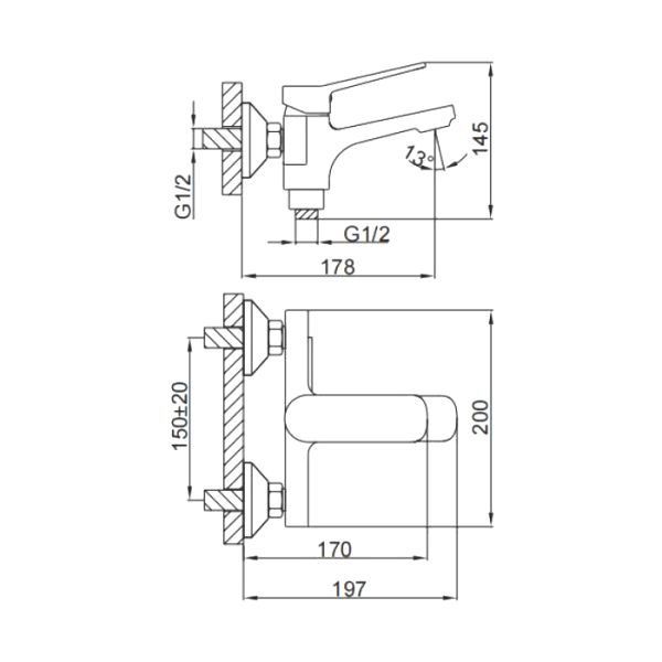 В комплекте:Душевой шланг 150 см, Душевая лейка, Держатель лейки, Комплект отражателей, Комплект эксцентриков