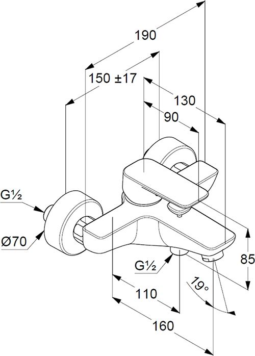 • однорычажный смеситель для ванны и душа DN 15