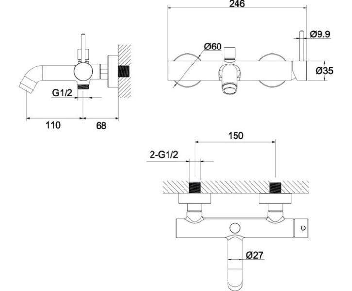 Смеситель для ванны и душа WHITECROSS Y1230GL золото Подробнее