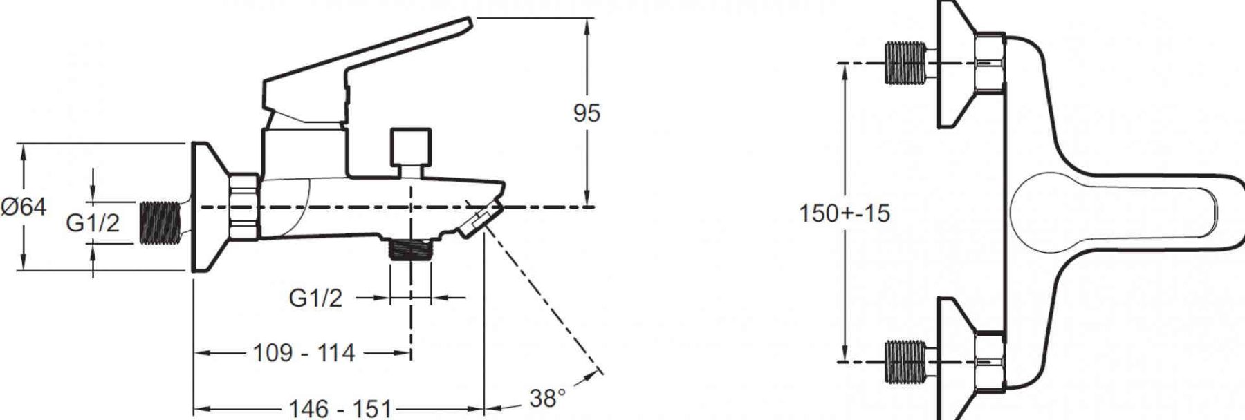 • Поток воды 22 л/мин для ванны