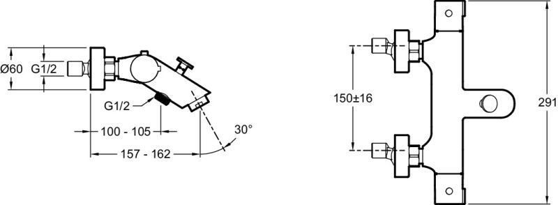 Настенный термостатический смеситель.