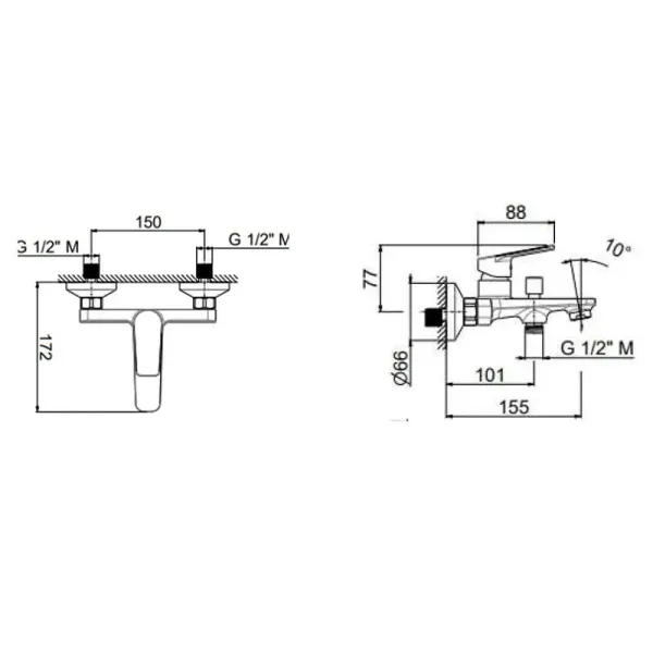 Смеситель для ванны NOTA с дивертором модель, представляющая базовый уровень сантехнической лине... Подробнее