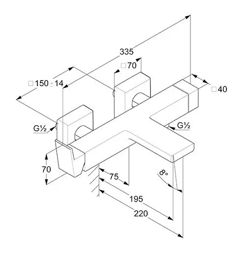 однорычажный смеситель для ванны и душа настенный монтаж литой рычаг аэратор М 24 х 1 керамическ... Подробнее