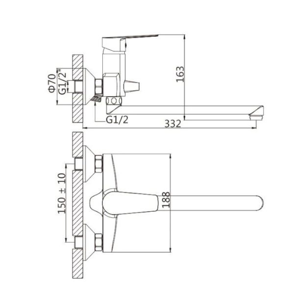 • Высота смесителя: