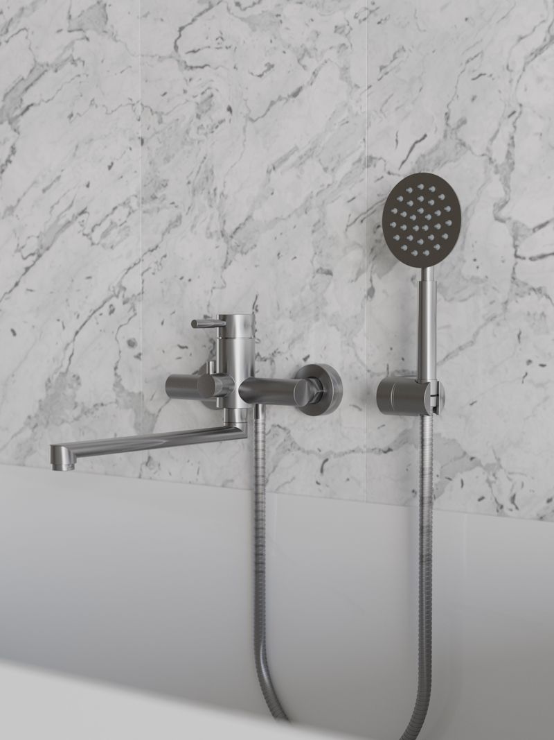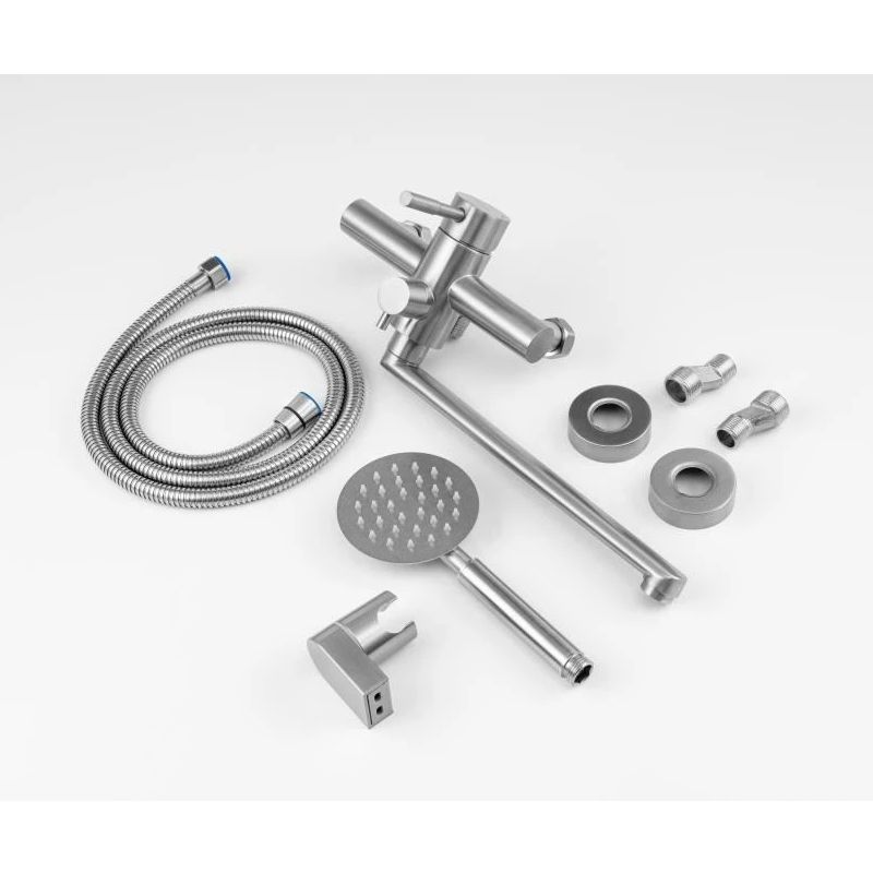 Длинный поворотный излив и матовая поверхность из нержавеющей стали — идеальное сочетание удобства и современного дизайна. Смеситель для ванны с душем KNOTLOR STREAMLINE SS-03 – это идеальное решение для создания комфортной и функциональной ванной комнаты. Этот однорычажный смеситель с длинным поворотным изливом сочетает в себе современный дизайн и практичность, что делает его подходящим для любых интерьеров.С моделью SS-03 вы сможете легко управлять температурой и потоком воды, что обеспечивает удобство в использовании. Благодаря этому, вы можете наслаждаться расслабляющими водными процедурами.Смеситель для ванны с душем также отлично подходит для ежедневного использования и позволяет поддерживать высокий уровень гигиены. Он станет отличным дополнением к вашим сантехническим решениям, так как гармонично вписывается в любую ванную комнату благодаря современному минималистичному дизайну.Однорычажный механизм гарантирует легкость в эксплуатации, позволяя вам быстро переключать его между различными режимами работы. Универсальный размер и стильный внешний вид делают KNOTLOR SS-03 не только практичным, но и эстетически привлекательным. Будьте уверены, что вы выбрали качественный и надежный продукт, который прослужит вам многие годы.Преобразите свою ванную комнату с новым смесителем для ванны и душа и наслаждайтесь каждой минутой водных процедур с высоким уровнем комфорта и стиля.