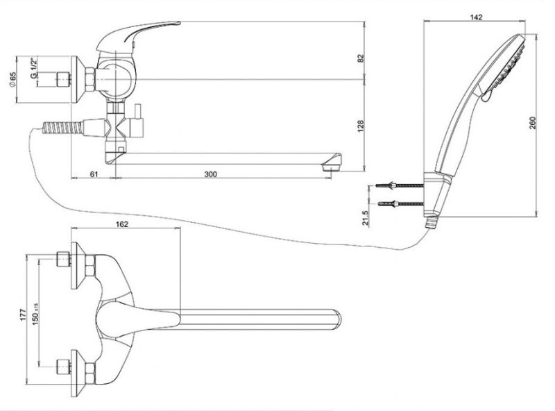 • Универсальный смеситель под все нужды - умыться, принять душ, набрать ванную.