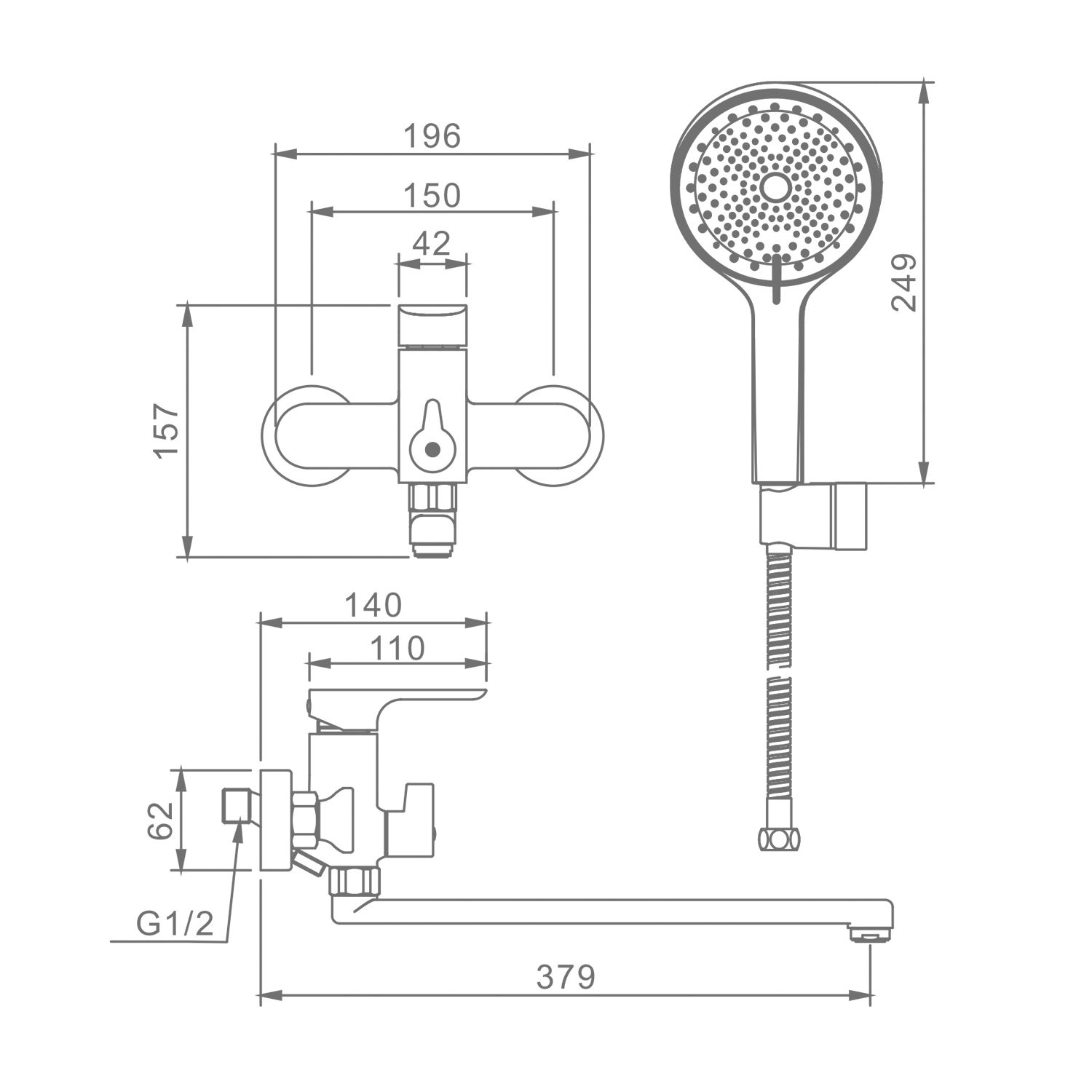 Смеситель для ванны Raglo универсальный.Цвет: хром.Материал: латунь.Управление: однорычажное.Механизм: керамический картридж.Излив: поворотный. Аэратор.Форма ручного душа: круглая.Количество режимов струи ручного душа: 3.Переключатель ванна/душ.Отверстия для монтажа: 2.Монтаж: на стену. Керамический картридж 35 мм Переключатель с керамическими пластинами; угол поворота – 90°Аэратор Душевой шланг 1.5м