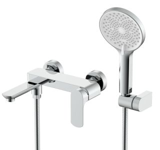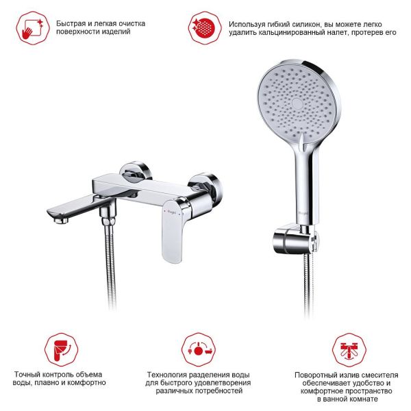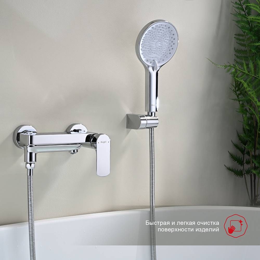 Смеситель для ванны Raglo Материал: латунь.Управление: однорычажное.Механизм: керамический картридж.Излив: поворотный. Аэратор.Форма ручного душа: круглая.Количество режимов струи ручного душа: 3.Отверстия для монтажа: 2.Монтаж: на стену.