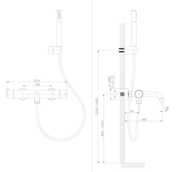 лейка из латуни, душевой шланг ПВХ