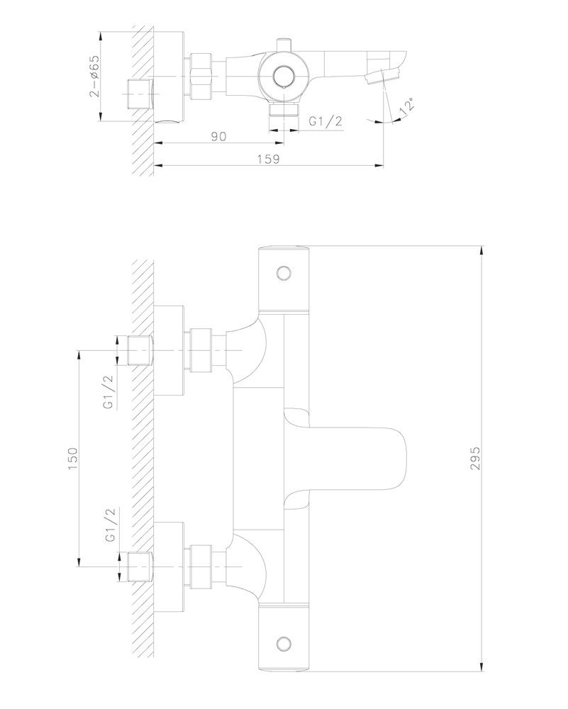 Смеситель для ванны Raiber Graceful RPB-008 с термостатом чёрный матовый
