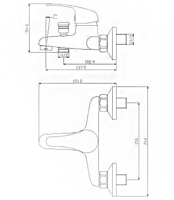 Смеситель для ванны Rossinka Y35-31 с монолитным изливом. Аксессуары в комплекте (шланг 1,5 м, настенное крепление, 1-функциональная лейка с функцией легкой очистки) Присоединительная группа (эксцентрики с отражателями) для вертикального крепления.