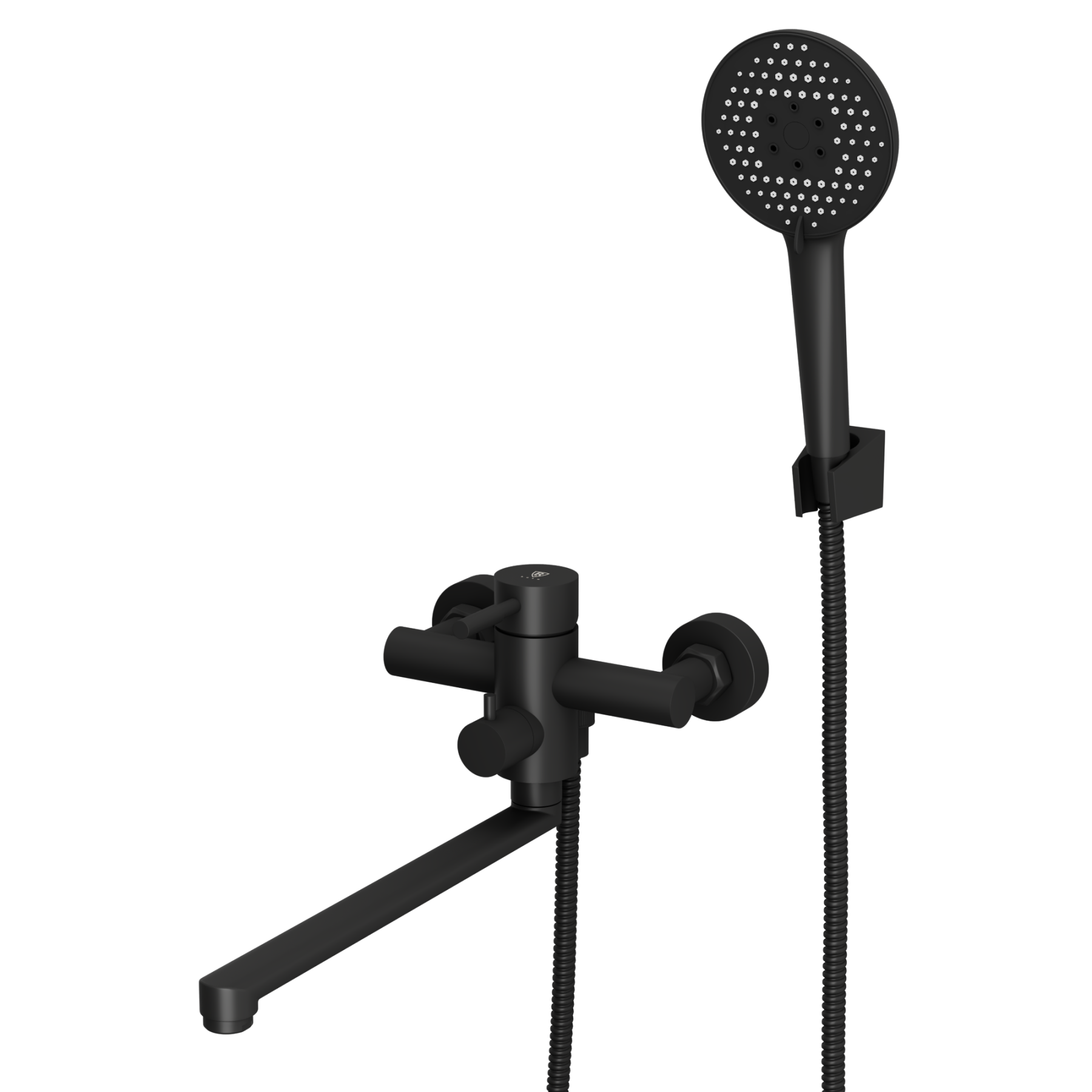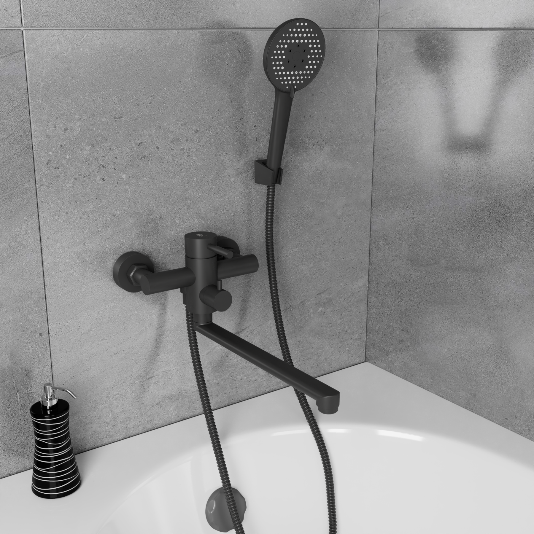 Смеситель для ванны RUSH Melos арт. SUS1101-51Black c длинным поворотным изливом изготовлен из нержавеющей стали SUS304 и имеет рычажное управление. Излив изготовлен из нержавеющей стали.В смеситель установлен картридж D-35 с керамическими пластинами, а также дивертор (переключатель). Пластиковый аэратор с нержавеющим корпусом.В комплекте 3-режимная душевая лейка и душевой шланг длиной 1,5м., держатель душевой лейки, фум-лента, индивидуальный пакет, паспорт, гарантийный талон.