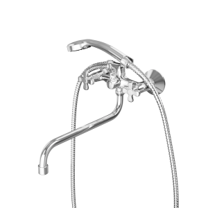 Смеситель для ванны RUSH арт.SA5350-51 с поворотным изливом из коллекции Sakhaline изготовлен из высококачественной латуни и имеет вентильное управление. Излив изготовлен из нержавеющей сталиВ смеситель установлены кран-буксы (RSH502) с керамическими пластинами, а также дивертор (переключатель) с керамическими пластинами. Пластиковый аэратор с нержавеющим корпусом. Излив поворотный 360гр. 280 мм. В комплекте однорежимная душевая лейка и душевой шланг длиной 1,5м., держать душевой лейки, латунные эксцентрики фум-лента, индивидуальный пакет, паспорт, гарантийный талон.