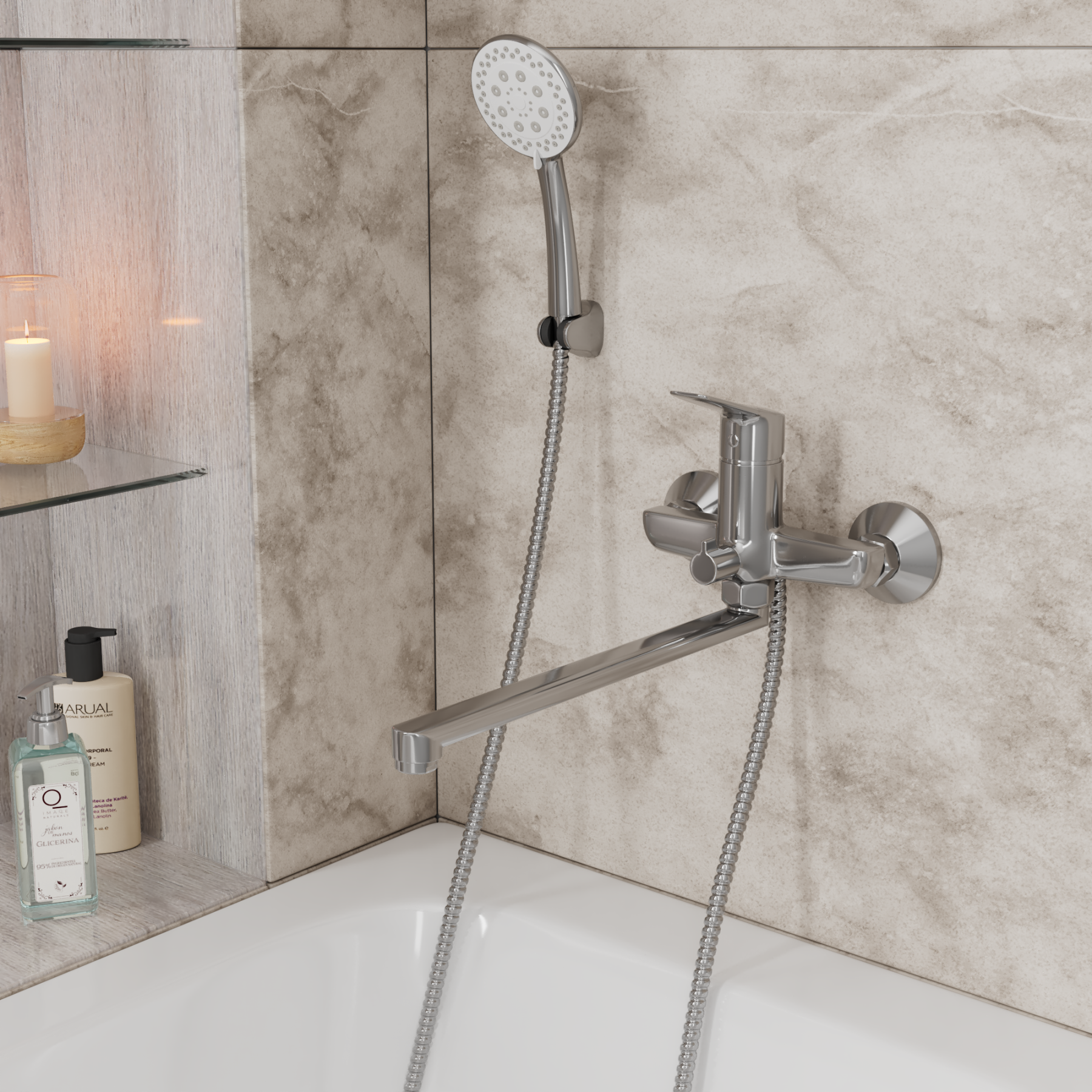 Смеситель для ванны RUSH арт.SA0930-51 с поворотным изливом из коллекции Samui изготовлен из высококачественной латуни и имеет рычажное управление. Излив изготовлен из нержавеющей сталиВ смеситель установлен картридж D-35 с керамическими пластинами, а также дивертор с керамическими пластинами. Пластиковый аэратор с нержавеющим корпусом. Излив поворотный 408мм. В комплекте универсальная присоединительная группа для установки на вертикальную поверхность, 5-режимная душевая лейка и душевой шланг длиной 1,5м., держатель душевой лейки, эксцентрики, индивидуальный пакет, паспорт, гарантийный талон.