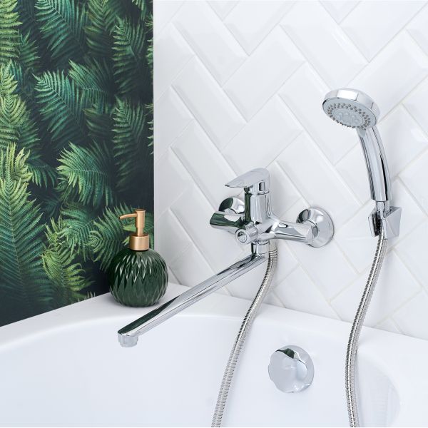 Однорычажный смеситель Торговой марки BOOU обладает скругленными углами и гранями корпуса. Модель прекрасно впишется в интерьер современной ванной комнаты. Наличие длинного поворотного излива делает модель универсальной: она используется для обеспе-чения водой как ванны, так и раковины – актуально в небольшом санузле. В комплекте удобная трехрежимная лейка с гибким шлангом и настенный держатель.