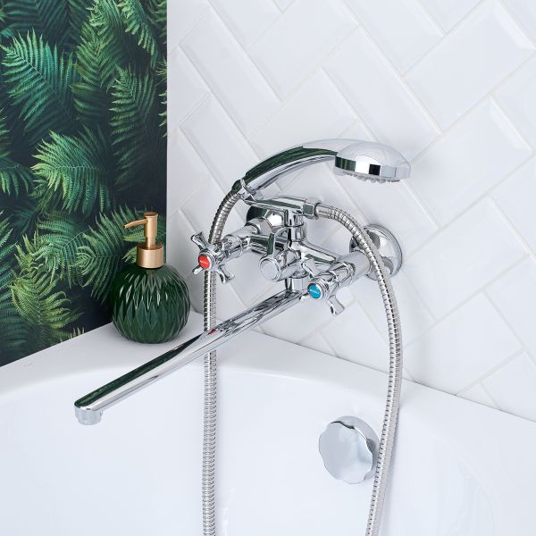 Универсальный смеситель с двумя рукоятками ТМ BOOU избавит от лишних трат и помо-жет освободить место в ванной комнате. Модель оснащена длинным прямым изливом, что позволяет удобно использовать его над раковиной и прилегающей к ней ванной. В комплек-те удобная трехрежимная лейка с гибким шлангом и настенный держатель.