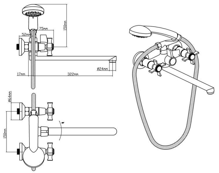 Назначение:для ванны/душа