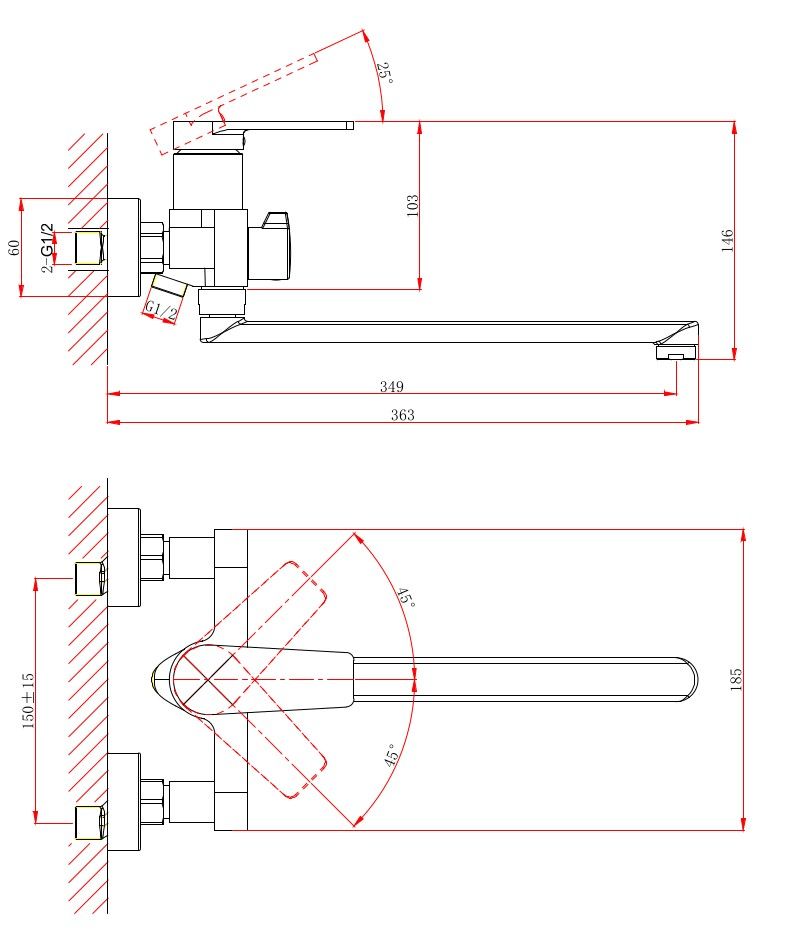 - Душевая трехрежимная лейка и шланг длиной 150 см уже в комплекте