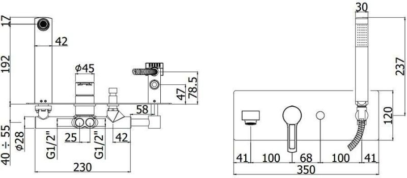 Смеситель для ванны встраиваемый с девиатором на 2 выхода, в к-те с душ.гарнитуром и накладкой из нерж. Стали 350х120мм,девиатор-кнопка, Черный матовыйСмеситель для ванны с душем Paffoni Ringo RIN001NO (с внутренней частью) предназначен для ванны с душем. Своим сдержанным дизайном и колористикой он внесет в интерьер помещения особое настроение, подчеркнув его своеобразие. Он выполнен из надежного материала латунь/Нержавеющая сталь, который не подвержен коррозии, а потому прослужит верой и правдой. Изделие является идеальным примером сочетания высокого качества и привлекательной цены. Управление в смесителе предусмотрено однорычажное, что порадует любителей такого типа смесителей. Высокую жизнеспособность и основательность смесителю гарантирует керамический картридж, отличительной чертой которого является продуманная конструкция - залог отменной работы в течение продолжительного времени. Не зря гарантия на смеситель – 5 лет, в течение которого компания Paffoni заверяет в его бесперебойной работе. Форма излива в смесителе - традиционная, а тип - фиксированный. При покупке учтите, что подводка у смесителя жесткая, что важно для его подключения.
