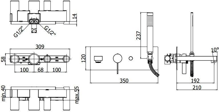 Смеситель для ванны встраиваемый на 2 выхода, накладка из нерж стали 350х120мм, душ гарнитур PREMIUM из металла, девиатор-кнопка, ХромСмеситель для ванны с душем Paffoni Rock RO001CR (с внутренней частью) предназначен для ванны с душем. Своим сдержанным дизайном и колористикой он внесет в интерьер помещения стильный акцент, подчеркнув его своеобразие. Он произведен из надежного материала латунь/Нержавеющая сталь, который не окисляется, а потому прослужит без ремонтов. Модель является оптимальным примером продуманной конструкции. Управление в смесителе предусмотрено однорычажное, что удобно для любителей такого типа смесителей. Высокую жизнеспособность и долговечность смесителю гарантирует керамический картридж, главным преимуществом которого является беспроигрышная конструкция - залог отменной работы в течение долгого времени. Не напрасно гарантия на смеситель – 5 лет, в течение которого компания Paffoni заверяет в его бесперебойной работе. Форма излива в смесителе - традиционная, а тип - фиксированный. При покупке учтите, что подводка у смесителя жесткая, что требуется знать для его подключения.