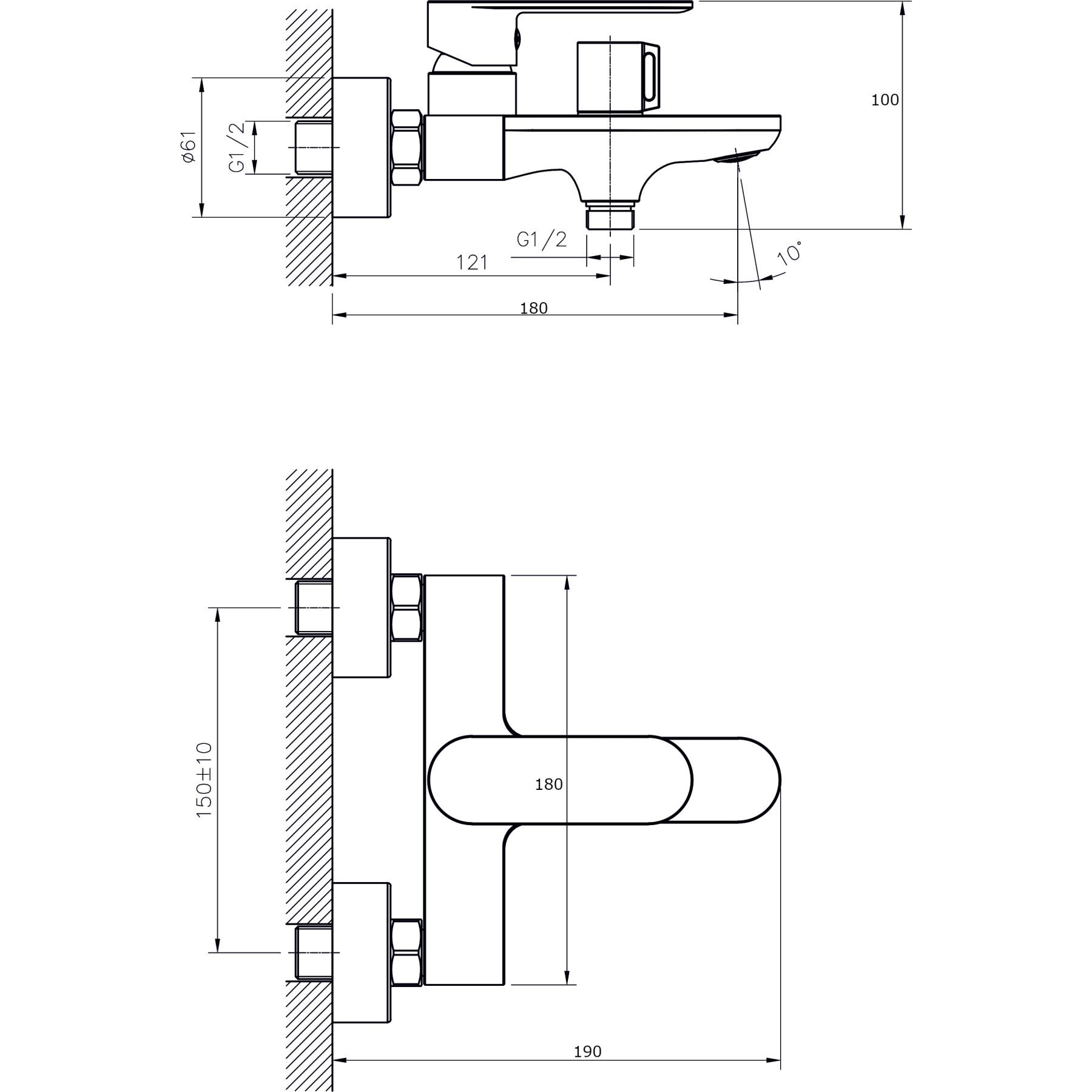 • Высота смесителя: