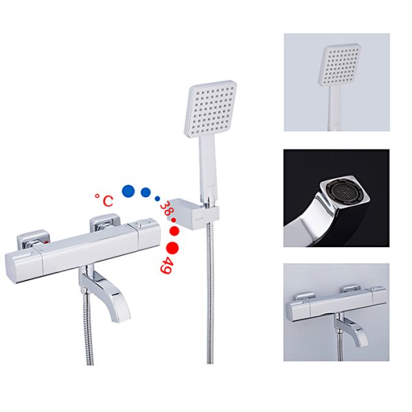 Смеситель для ванны Gappo Atlantic G3291 термостатический - стильная модель с корпусом квадратной формы и коротким поворотным изливом, который одновременно является переключателем на ручной душ. Смеситель произведен из латуни с хромированным покрытием и оснащен термостатическим картриджем YIZHAN. Душевой гарнитур в комплекте.