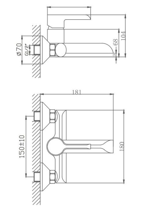 Смеситель для ванны Shevanik S6002H, черный/хром.Душевой гарнитур в комплекте: да.Управление: рычажное.Монтаж: настенный.