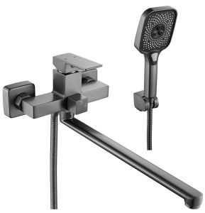 Смеситель для ванны Shevanik S9622T, оружейная сталь.Душевой гарнитур в комплекте: да.Управление: рычажное.Монтаж: настенный.