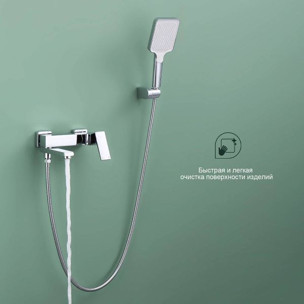 Смеситель для ванны Splenka S01.30. Цвет: хром. Материал: латунь. Управление: однорычажное. Механизм: керамический картридж. Излив: поворотный. Стандарт подводки: G 1/2. Аэратор. Монтаж: на стену. Душевая лейка - 3 режима.