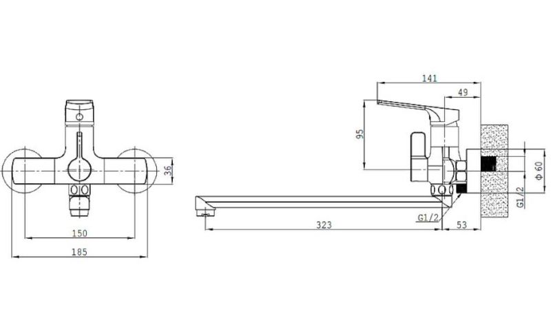 Смеситель для ванны Splenka S06.22.06 универсальный. Цвет: черный. Материал: латунь. Управление: однорычажное. Механизм: керамический картридж. Излив: поворотный. Стандарт подводки: G 1/2. Аэратор. Переключатель ванна/душ. Монтаж: на стену. Душевая лейка - 3 режима.