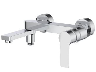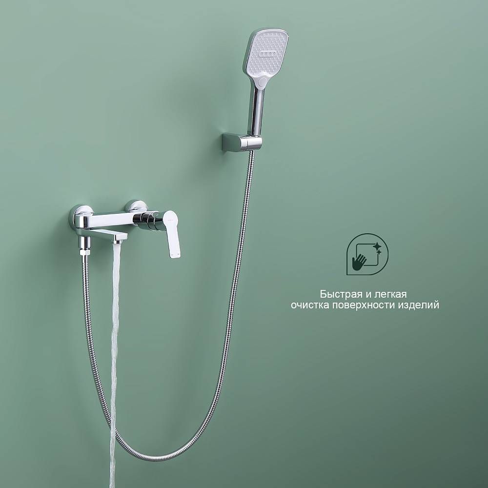 Смеситель для ванны Splenka S06.30, хром. Материал: латунь. Управление: однорычажное. Механизм: керамический картридж. Излив: поворотный. Стандарт подводки: G 1/2. Аэратор. Монтаж: на стену. Душевая лейка - 3 режима.