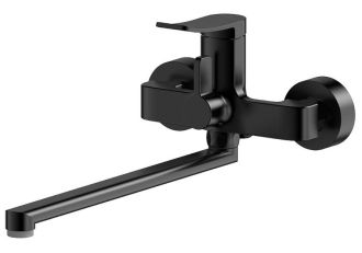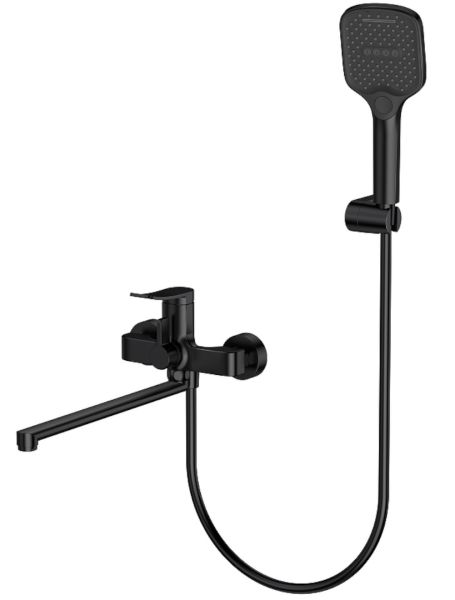 Смеситель для ванны Splenka S31.22.06 универсальный. Цвет: черный. Материал: латунь. Управление: однорычажное. Механизм: керамический картридж. Излив: поворотный. Аэратор. Переключатель ванна/душ. Стандарт подводки: G 1/2. Отверстия для монтажа: 2. Монтаж: на стену. Душевая лейка - 3 режима.