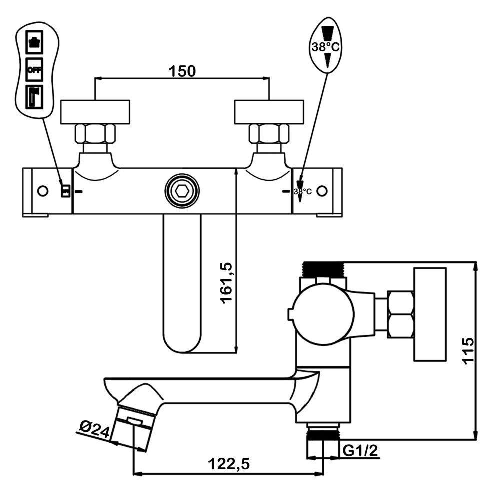 - термостатический ограничитель температуры до 38 градусов;